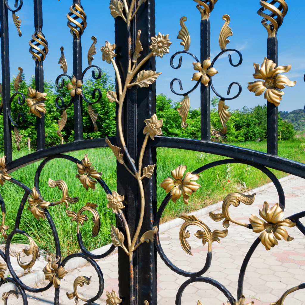 Volutes, arabesques, pointes de lance, rosaces ou feuillages décoratifs : chaque détail est façonné avec soin pour retrouver l’esprit des portails d’antan.